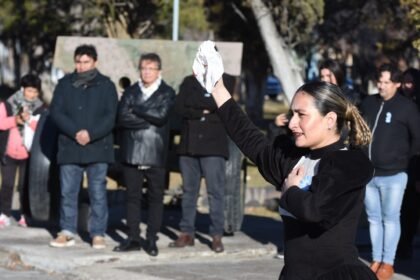 El intendente Sebastián Balochi, junto a su equipo de Gobierno, concejales, el padre Ricardo Constantini, veteranos de guerra, banderas de ceremonia de instituciones y escuelas de Sarmiento, participa...