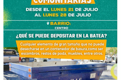 La Municipalidad de Sarmiento informó que, hasta el lunes 28 de julio, estará disponible un contenedor en el barrio Centro para la disposición de residuos voluminosos. La iniciativa forma parte del ci...